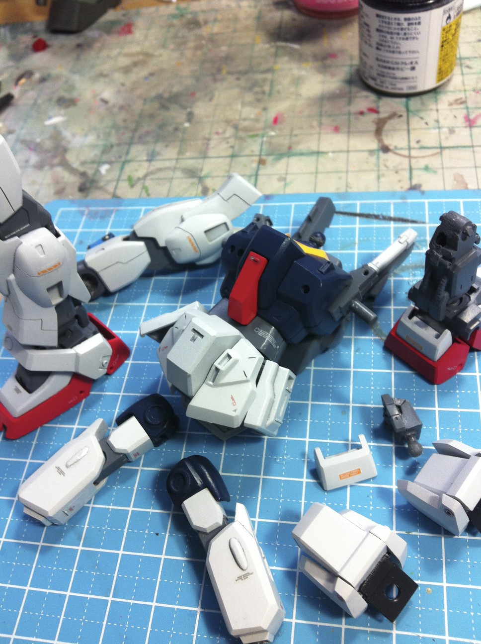 細かな塗り分けと、スミ入れ、デカール貼りを同時進行中。