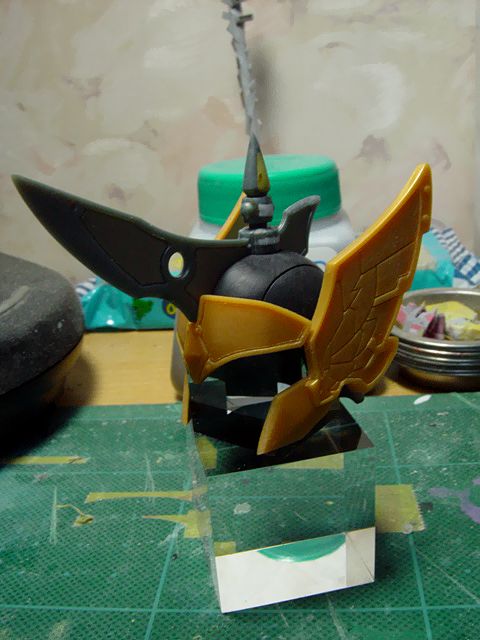 頭のツノは、ライナーを接着し、シャープに。