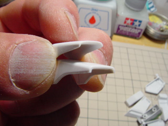足のバーニアカバーを削ってプラの厚みを消していきます。