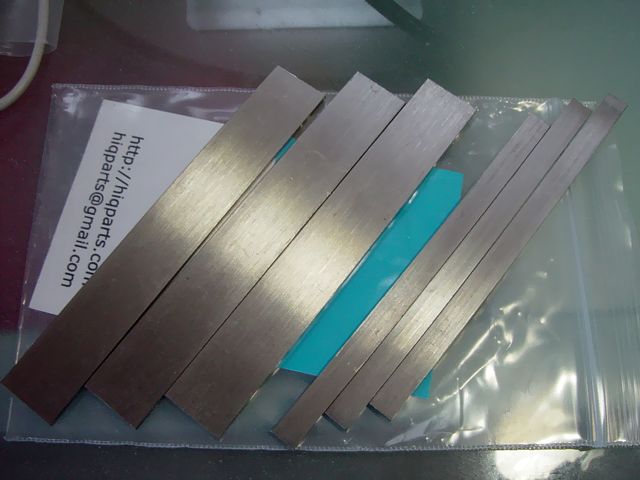 ステンレスのフラットバーで、10x5x2tと10x1.5x2tの2サイズが各3本入ってます。