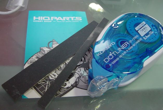 ドットのりで、紙ヤスリを貼り付けて早速実戦投入です。